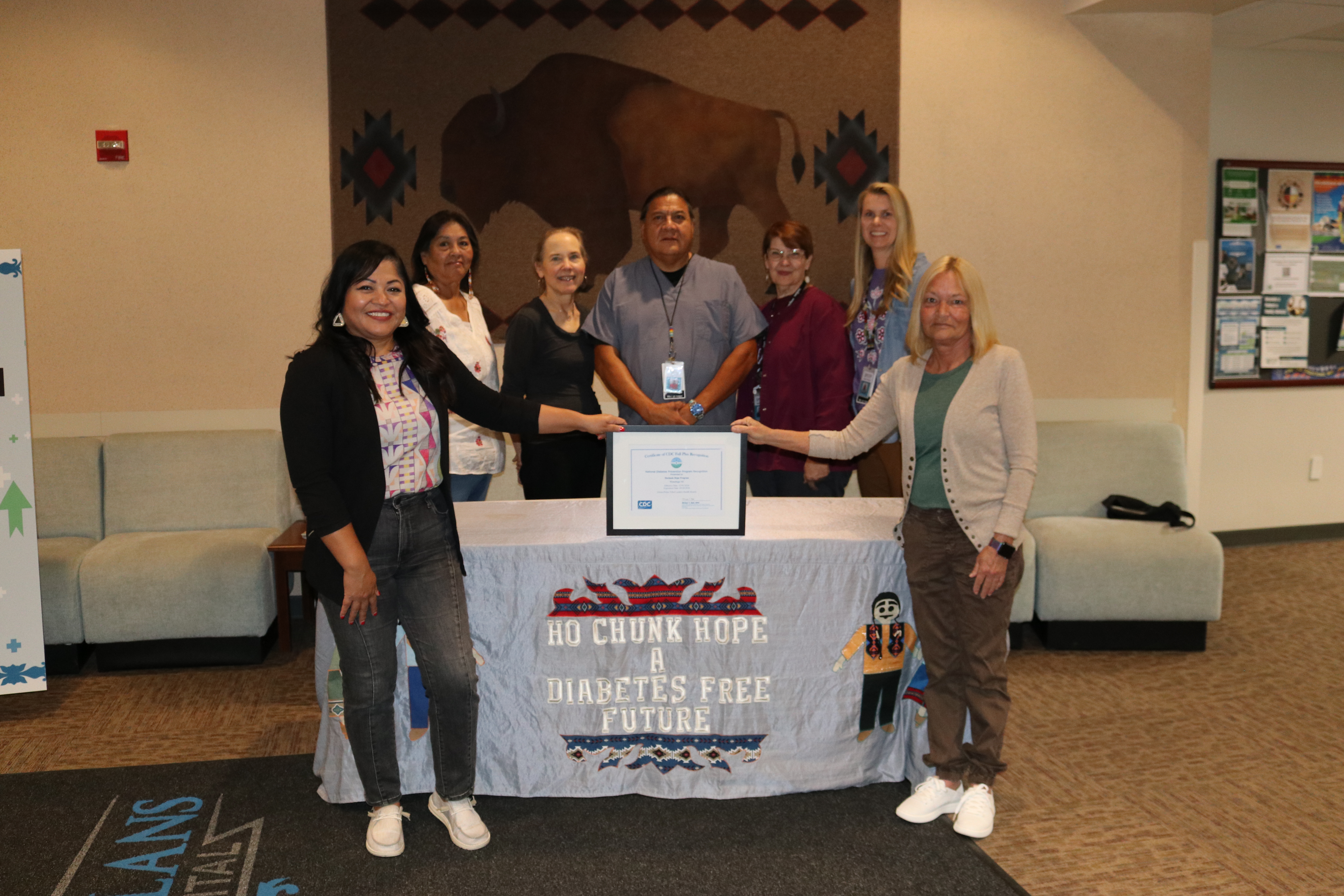 Winnebago, NE – Winnebago Comprehensive Healthcare System’s (WCHS) Wai pi nagu (Diabetes) team has achieved Full Plus Recognition from the Centers for Disease Control and Prevention (CDC) for its Ho Chunk Hope Diabetes Prevention Program. This designation is the highest level awarded by the CDC’s National Diabetes Prevention Program and is extremely rare among Tribal communities.