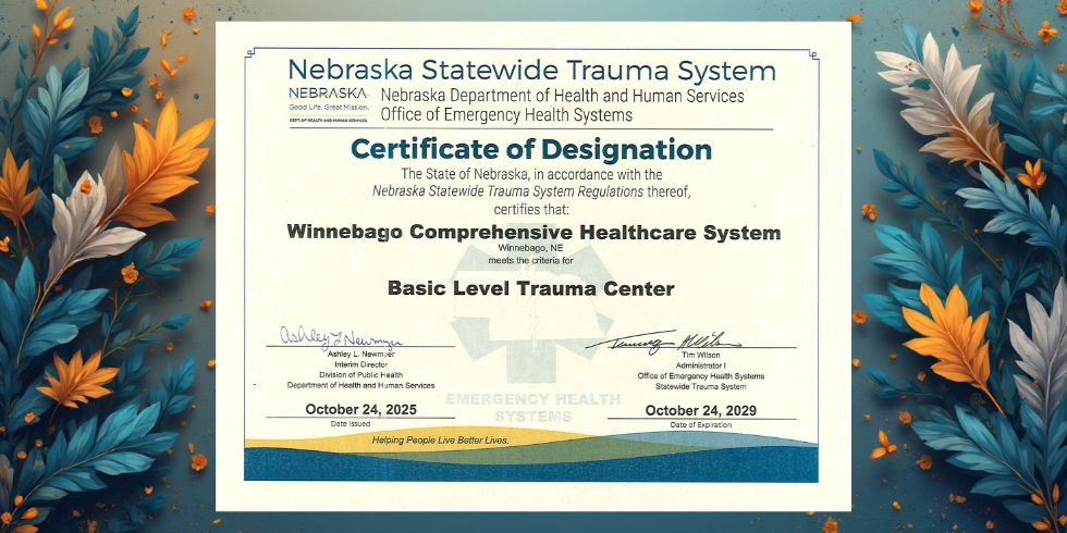 Winnebago, NE – Winnebago Comprehensive Healthcare System (WCHS) is proud to announce that its Emergency Room has successfully obtained Nebraska Basic Trauma (Level IV) Center designation from the Nebraska Department of Health and Human Services (DHHS), pending receipt of the final letter within the next 30 days. WCHS earned this achievement with zero deficiencies, a rare accomplishment that highlights the exceptional skill, dedication, and commitment of its healthcare team.
